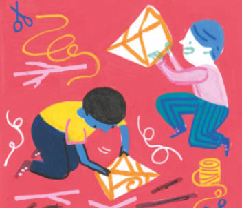 La programmation de Little Villette est super riche, difficile de choisir ! Pour l’illustrer au mieux, j’ai représenté un maximum d’activités, à la manière d’un cabinet de curiosité. Ainsi, dans ces illustrations, c’est grâce à l’accumulation et à l’association d’objets que l’on pose côte à côte, que les éléments ressortent bien : c’est un joyeux bazar organisé. Dans cet ensemble, on trouve des insectes, des ballons, des défilés de moutons, de poissons, et de lanternes, mes préférées.