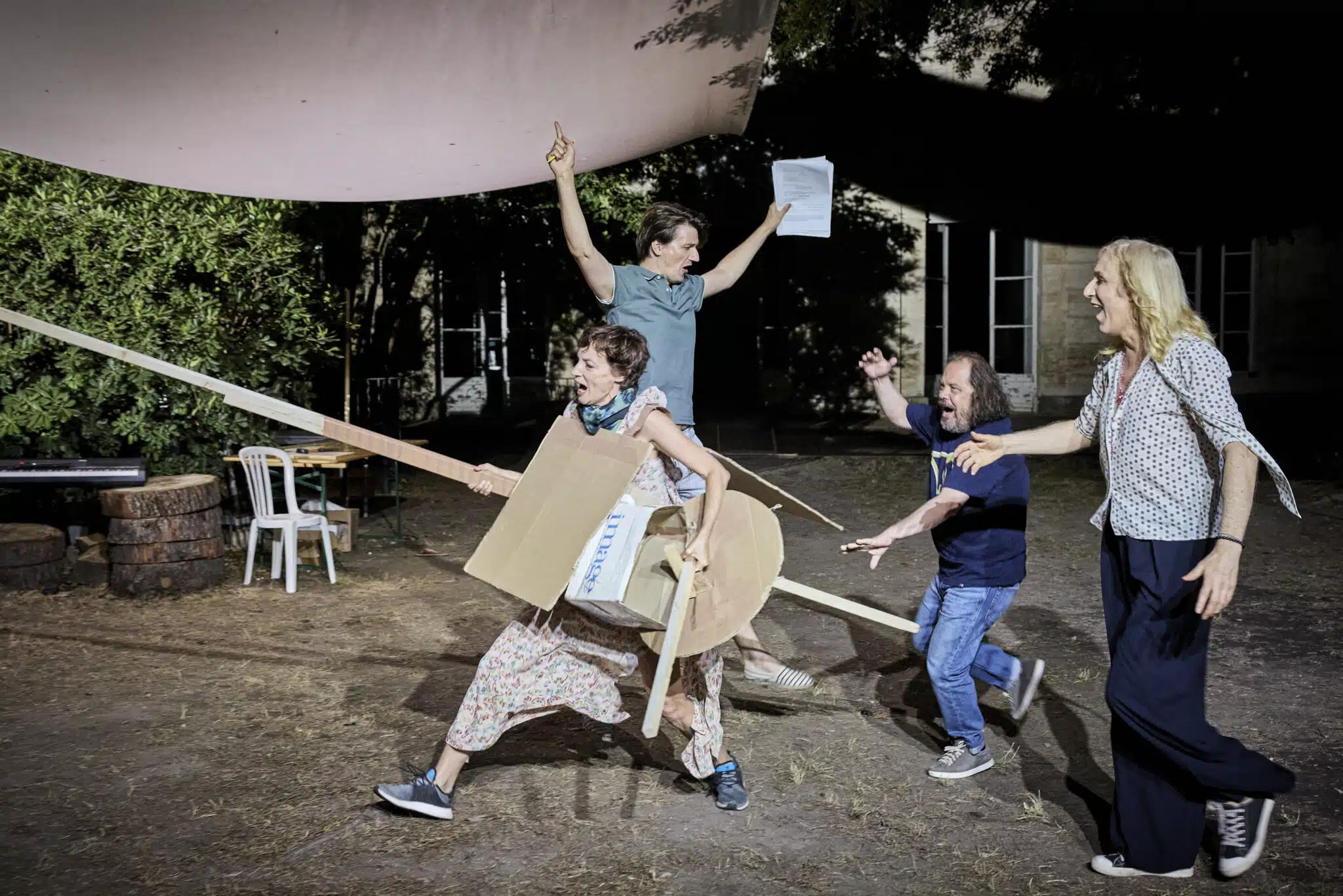 La partition est pétrie de toutes les énergies, les inquiétudes, les enthousiasmes, les frustrations que génèrent les répétitions et le travail de recherche. Il y a des moments où on est très assidus, très pointus sur le texte, et d’autres où on improvise, mais toutes ces variations renvoient au côté disparate du livre. Cervantès a assemblé des éléments complètement épars : chansons, poèmes, réflexions philosophiques, récits amoureux, tentatives de pastorales, récits, aventures… C’est ce qui en fait un roman très puissant. L’auteur arrive à faire coexister des choses qui, sans son génie, ne seraient qu’un ramassis d’éléments éparpillées, sans relation les uns avec les autres. Le spectacle rend compte de cela, non pas parce qu’on a copié Cervantès, mais parce que c’était la dynamique des répétitions. On pourrait dire, comme Albert Serra lors d’une rencontre à Avignon, que Quichotte est moins la narration d’une aventure que l’aventure d’une narration. Ainsi, le spectacle est aussi le récit de sa fabrication.