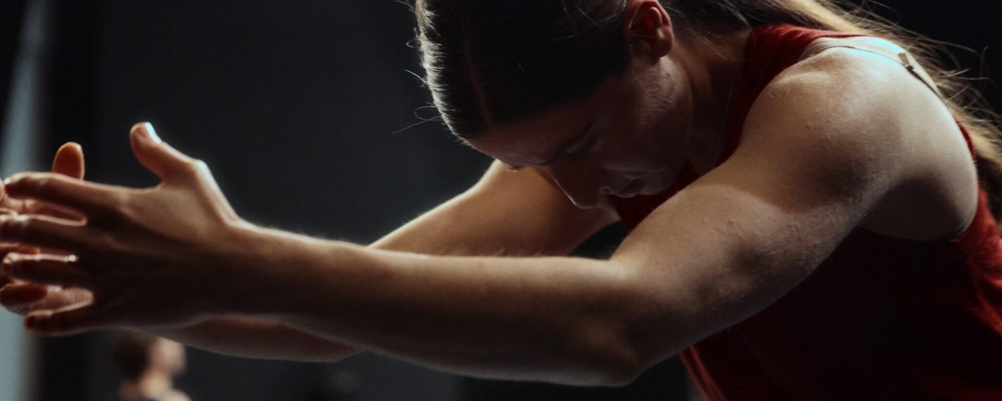 Dans sa troisième création, Léa Vinette s’intéresse à la tension entre l’écoute, l’adaptation à l’autre et l’émergence du désir. Ce qui importe est la pulsation des corps : une danse faite de micro-mouvements, d’articulations fines, de respirations partagées. À partir de cette matière contenue, le trio joue avec les contrastes, étire la danse, libère par moments des physicalités plus engagées, pour laisser apparaître le mouvement plutôt que de l’imposer.