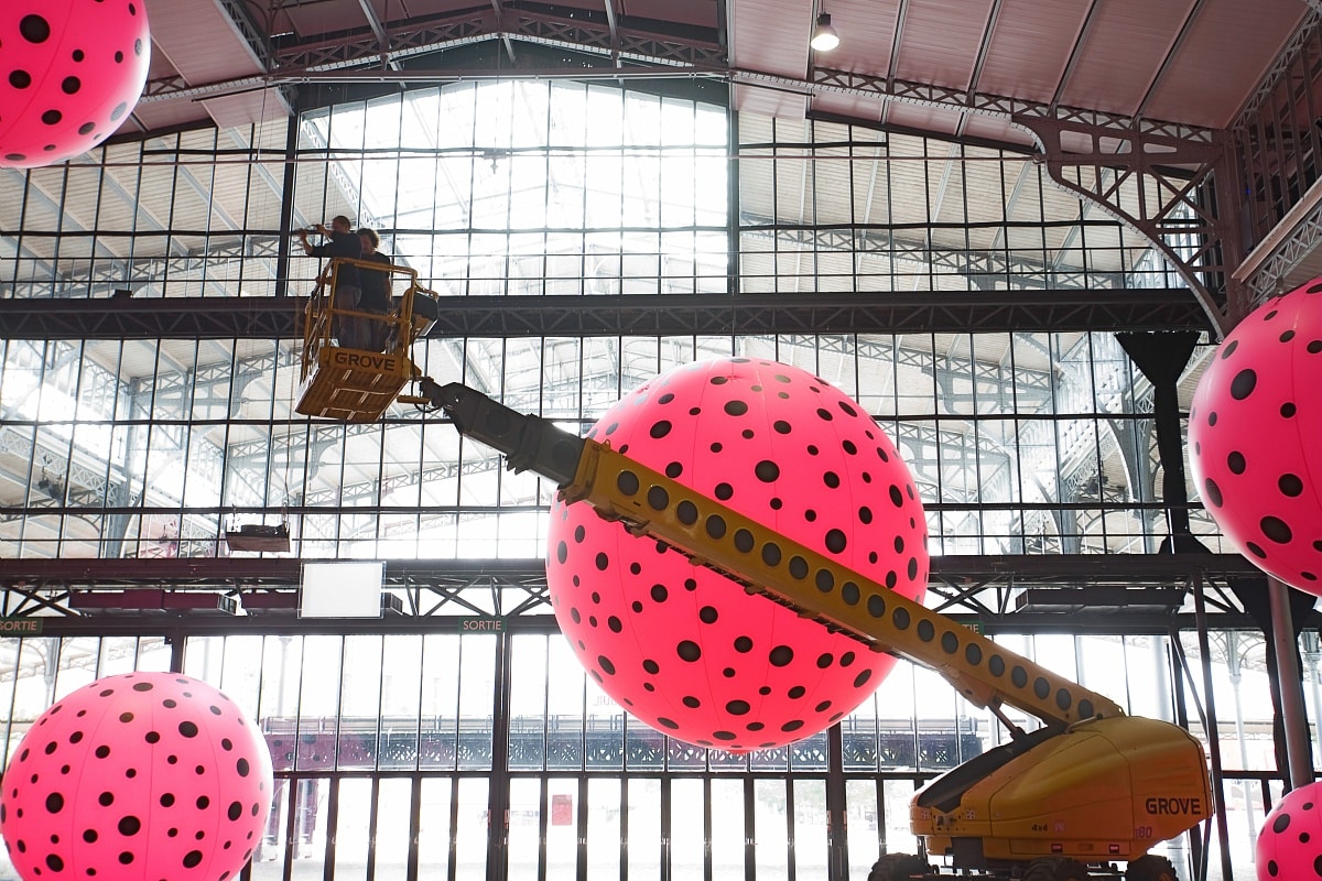Il y a quelques jours, avec le chef de service, nous participions au montage de 100 % L’EXPO en acheminant tout au long du chantier : châssis, cimaises et autres structures, depuis nos différents entrepôts. Nous assurons aussi tout le transport des œuvres (à l’aller comme au retour).