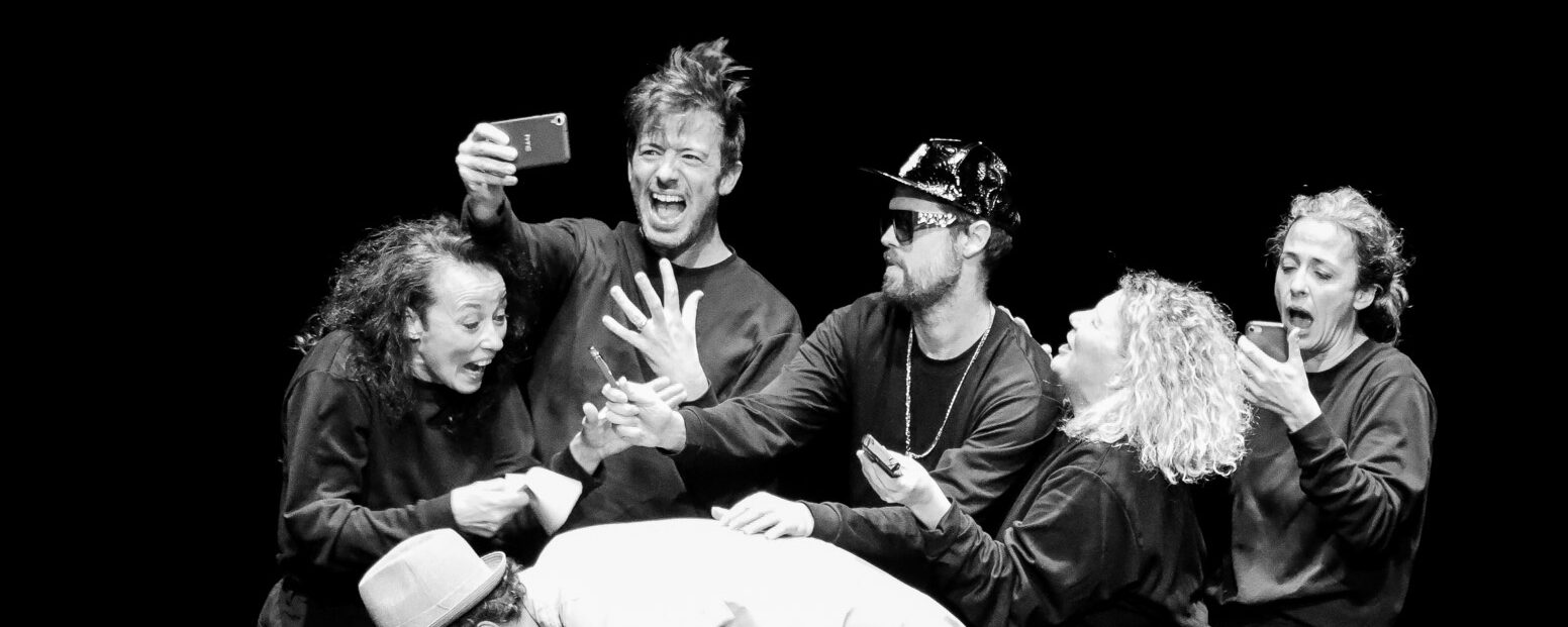 Ce spectacle est né d’un questionnement sur la nouvelle façon de regarder le monde engendrée par l’irruption du numérique et des réseaux sociaux dans nos vies. Aujourd’hui, le monde est par cet axe observé et donné à voir en accéléré, avec un focus sur les événements, ce qui donne le sentiment d’être toujours un peu à la traîne. Il y a un décalage entre l’accélération technologique et la façon dont on ressent notre vie de l’intérieur. Cette nouvelle temporalité nous interroge tous mais peut-être surtout ma génération, qui a vécu ce bouleversement de façon très spectaculaire, en très peu de temps. Sans chercher à imiter le réel ou à produire un objet documentaire, je me suis emparée de ce sujet avec les outils qui sont au cœur de mon approche artistique — la physicalité, le sound design, le rire — pour le transformer, le théâtraliser, et surtout s’amuser ! De la juxtaposition, de la confrontation de multiples personnages, situations, époques, milieux différents, naît une impression globale de notre monde contemporain, de sa folie, son absurdité, sa beauté.