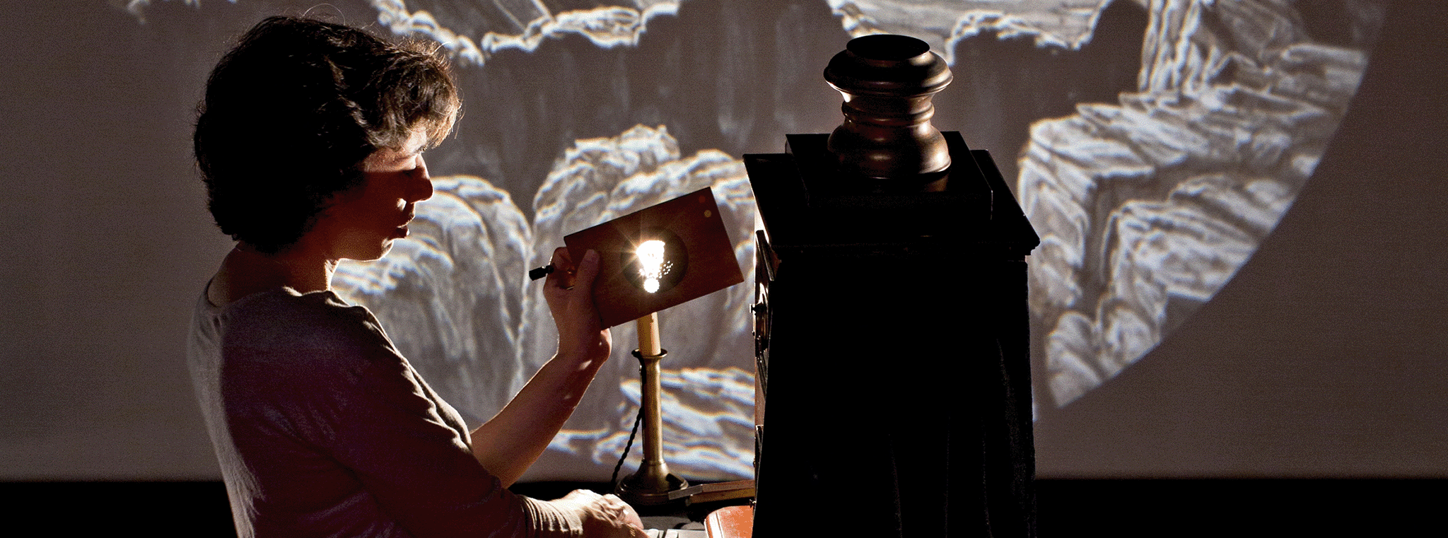 Anne Gourdet-Marès invente un conte visuel et musical qui réveille la magie des premières projections lumineuses. À l’appui d’authentiques peintures sur verre du XIXe siècle et de films muets, les artistes impulsent une aventure aux origines du cinéma.