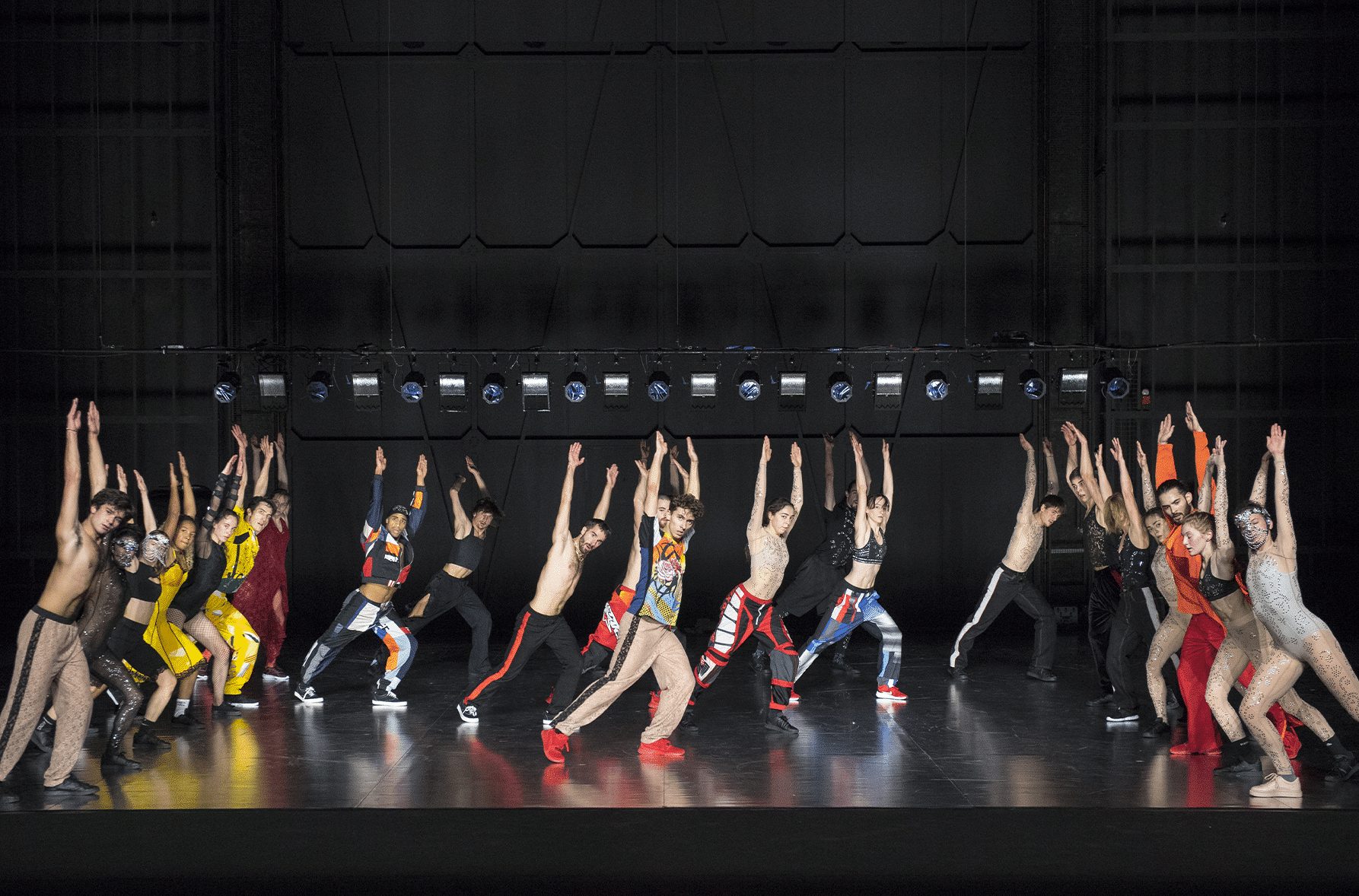 Soit deux pièces traversées par l’euphorie et l’extase, qui forment un programme très excitant. Maud Le Pladec a imaginé Static Shot comme un plan cinématographique d’une trentaine de minutes, où le mouvement et le regard ne s’arrêtent jamais. Au plateau, les corps et les sons font bloc en un climax permanent. Porté par les 130 battements par minute de la musique signée DJ Chloé et Pete Harden, le groupe bouge à l’unisson et se recompose en permanence, en une chorégraphie pop et hypnotisante.