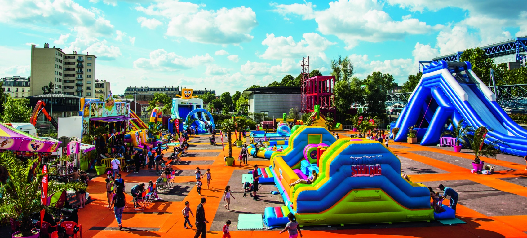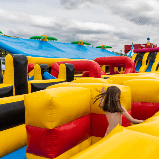 Un parc d’attraction sous forme de village de gonflables avec un toboggan, des jeux d’eau, des trampolines, un labyrinthe, des châteaux gonflables, des piscines à bulles mais également une dizaine d’attractions pour les plus grands… N’oubliez pas les maillots de bain pour le toboggan géant !