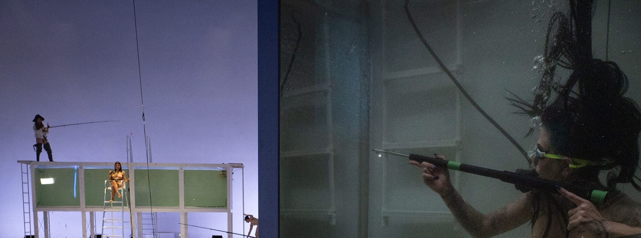 Ces dernières années, les spectacles de Florentina Holzinger ont fait sensation par leur capacité à articuler les registres et les références, par l’énergie inédite avec laquelle ils se nourrissent de pop-culture et d’entertainment pour mettre le grand art et le grand spectacle au service d’un propos résolument émancipateur. Entré au répertoire de la Volksbühne de Berlin, où il a été créé en 2022, Ophelia’s Got Talent en est une nouvelle brillante démonstration : c’est sur une scène ressemblant à un plateau de télévision que se déploie cette méditation autour de la figure d’Ophélie, où l’élément aquatique est la trame d’une suite de variations sur le féminin, la mort et la transformation. Deux heures trente durant, une avaleuse de sabre et une enfant qui chante, des danseuses-trapézistes ou nageuses, des harpistes et des harpies, une piscine et un hélicoptère, composent une succession de tableaux plus stupéfiants les uns que les autres. De cet enchevêtrement de métaphores et de métamorphoses, de cet océan de références culturelles et historiques émergent brutalement des épisodes d’une grande violence… À travers Ophélie mais aussi Léda, Mélusine ou Ondine, ses ancêtres et ses cousines, plusieurs générations de femmes évoquent la force, la fragilité, la domestication et l’incoercibilité du corps féminin : actant le crépuscule de l’« ère du Verseau », elles sondent du même coup notre capacité à nous réinventer pour nous adapter à des formes de vie nouvelles.