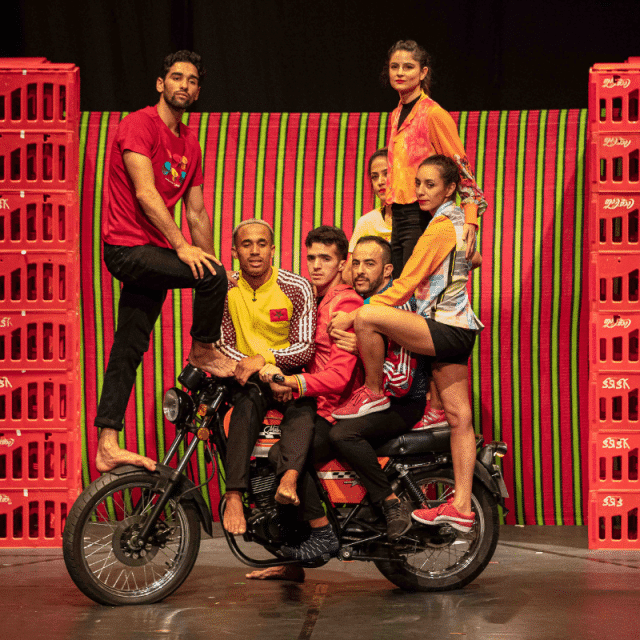 Soit quinze artistes choisis lors d’une grande audition qui a eu lieu au Maroc à l’automne 2018. Leurs spécialités ? Acrobatie au sol traditionnelle et moderne, danse, break, taekwondo ou foot freestyle. Un mélange de styles, de personnalités et de techniques, qui donne au collectif une vitalité unique. Pour la mettre en scène, Maroussia Diaz Verbèke a imaginé une lumineuse collection de numéros acrobatiques, avec la fantaisie pour seule règle. On y croise des cagettes en plastique rouge, une moto, un ballon de foot et mille astuces magiques. Pour la mettre en son, DJ DINO est sur scène et le rap n’est pas loin. Pour la colorer, l’univers visuel du photographe Hassan Hajjaj inspire les vêtements et entoure les acrobates. FIQ ! (RÉVEILLE-TOI !) est porté par une joie qui s’immisce dans chaque idée, sketch ou citation. En puisant dans la tradition de l’acrobatie marocaine et l’énergie de la jeunesse, le spectacle crée une alchimie moderne. Le regard à la fois tendre, profond et ludique de quinze jeunes sur leur Maroc d’aujourd’hui.