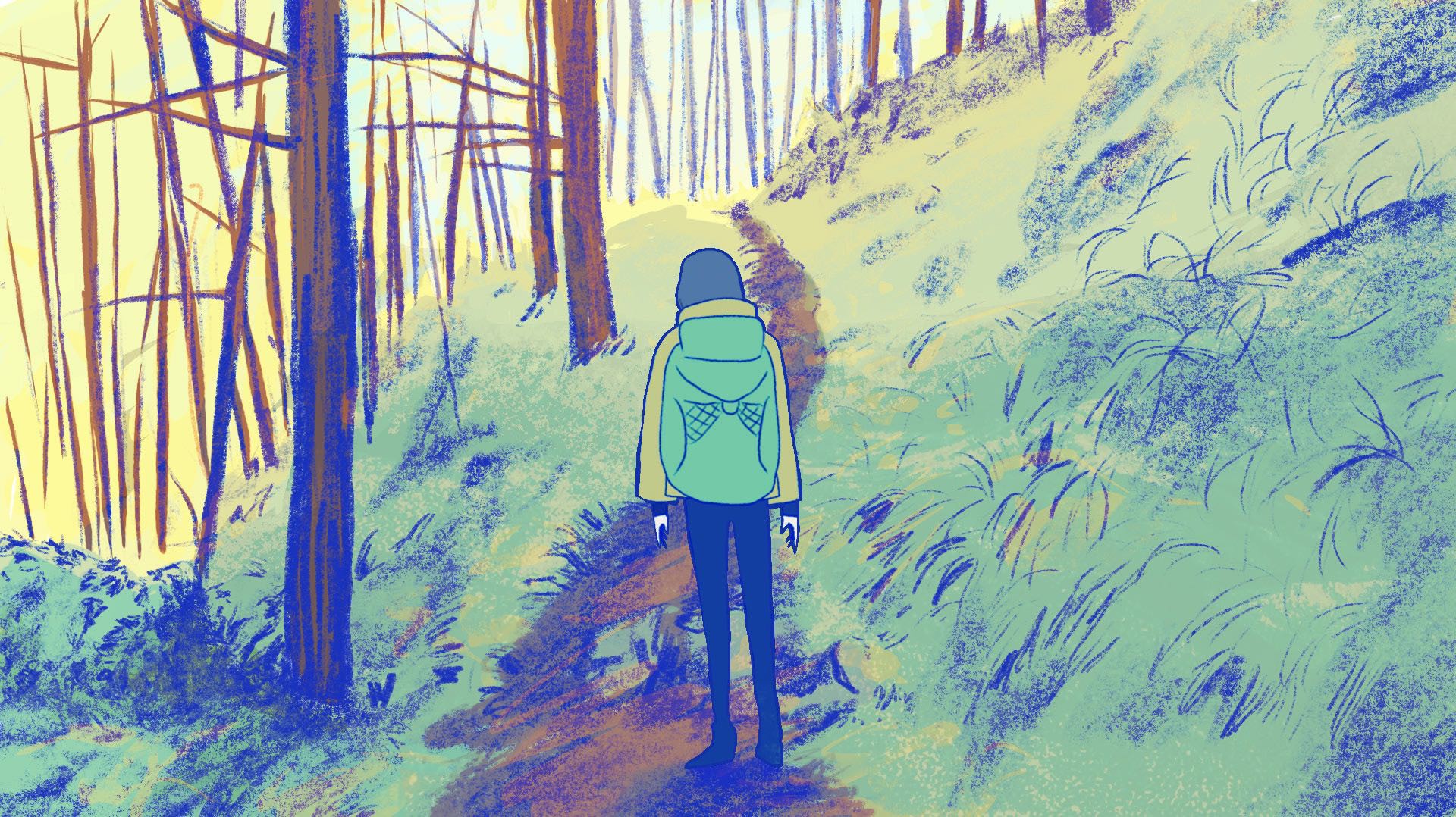 Lorélie part seule en montagne. Elle veut aller jusqu’au bout d’un chemin qu’elle empruntait souvent quand elle était petite.