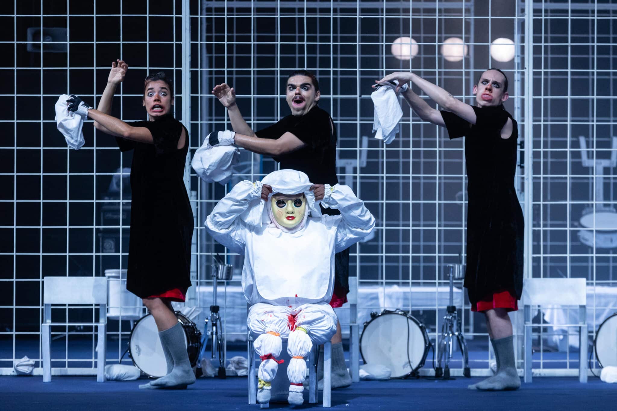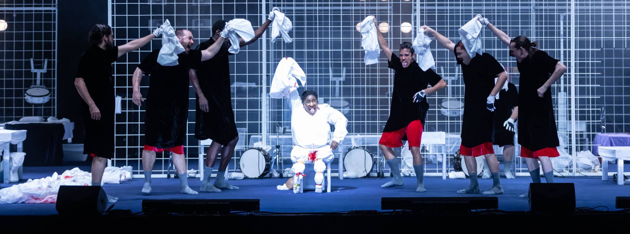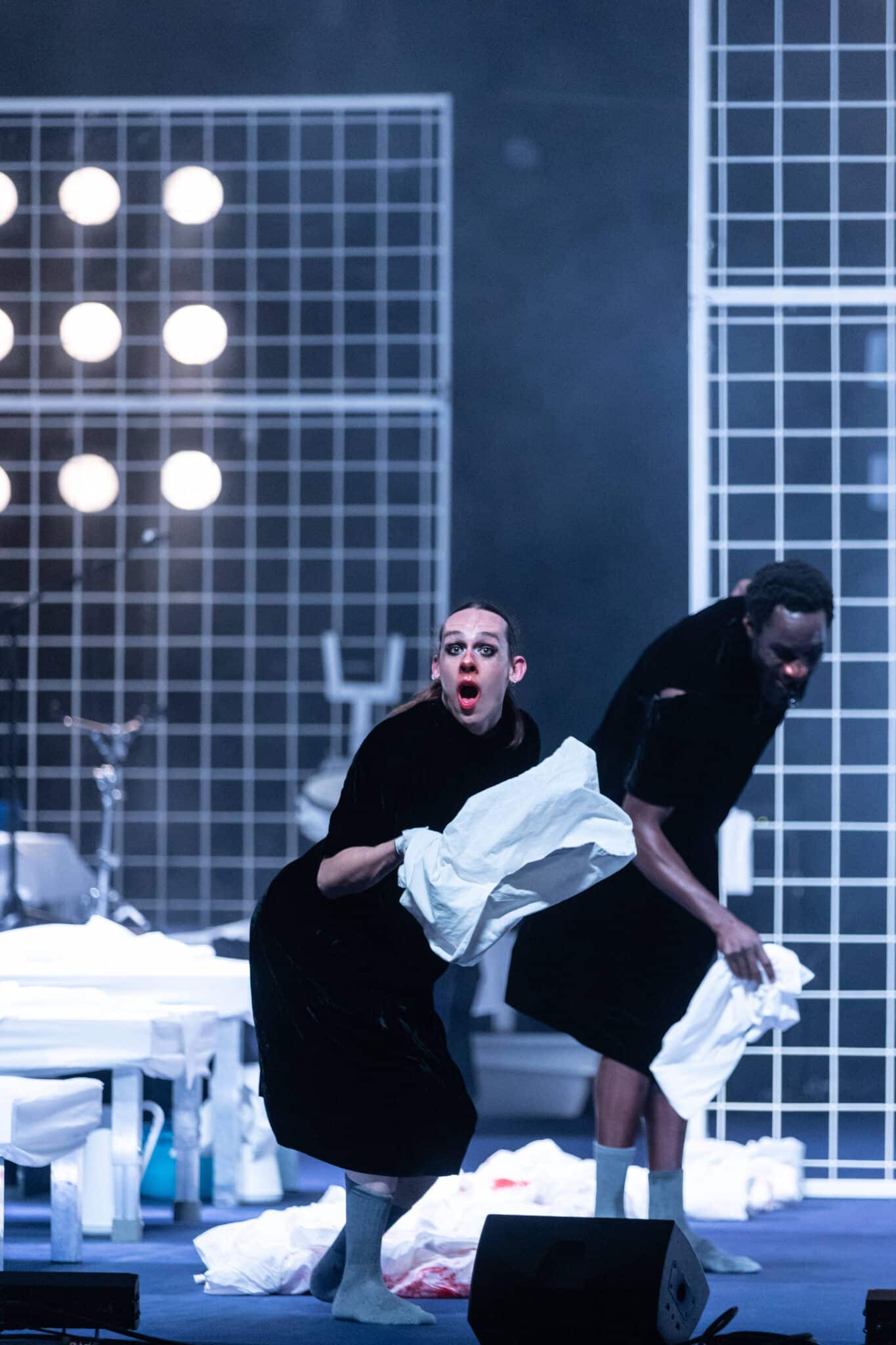 Marlene Monteiro Freitas est une star de la danse contemporaine. Prenez pour preuve le Lion d’argent que lui a décerné la Biennale de Venise, en 2018. Le Festival d’Automne lui consacre, en 2022, un portrait avec deux programmes présentés à La Villette, et cet été, c’est elle qui, pour la première fois, permet à la danse d’ouvrir la Cour d’honneur du Festival d’Avignon. Ce qui fait d’elle une star, c’est sa danse si personnelle. Sa grammaire chorégraphique, pantomimique, est reconnaissable entre toutes. Chez Marlene Monteiro Freitas, le mouvement s’empare de l’ensemble du corps, de la langue aux orteils, en passant par les orbites des yeux. Les dos sont raides comme une justice qui aurait perdu la boussole du bien et du mal. Pour Nôt, elle retient la nuit, car au lever du jour, Shéhérazade pourrait mourir. Marlene Monteiro Freitas se concentre sur cet exercice de survie. Elle traduit par la danse l’énergie des contes qui se transmettent de génération en génération. Chez elle, le mouvement devient un flux, croisé, contraint et contredit par d’autres. Sur scène, le spectacle s’amuse des ambiguïtés entre le vice et la vertu, entre l’immense et le minuscule, le mensonge et la vérité.