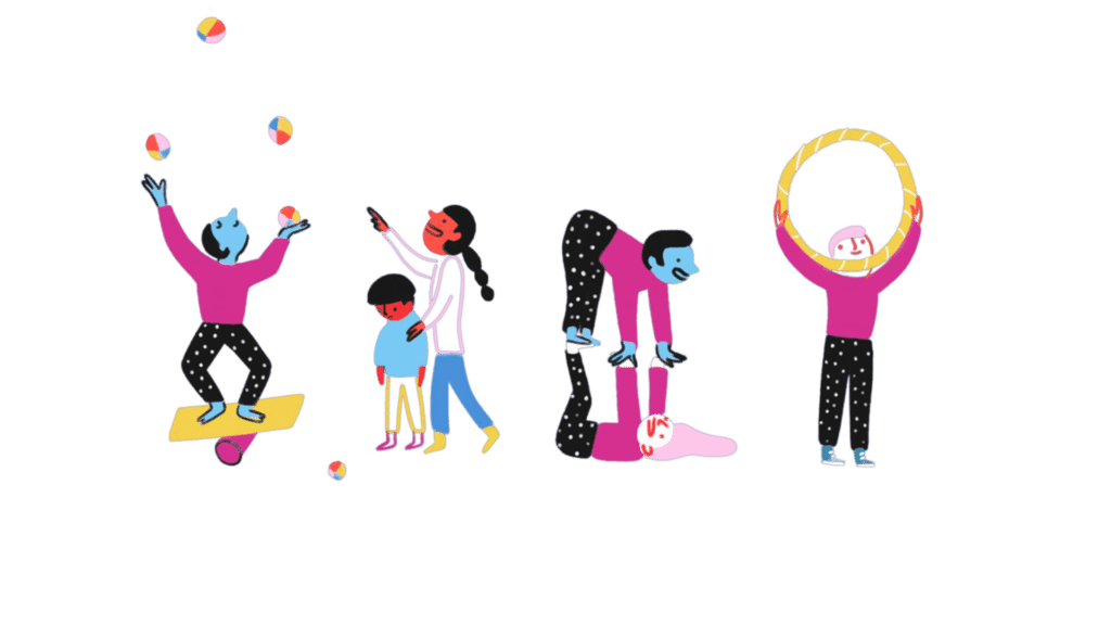15h à 16h Impromptus de la compagnie Zip Zap Circus : des numéros de cirque et des improvisations de danse seront proposés par les artistes de Moya