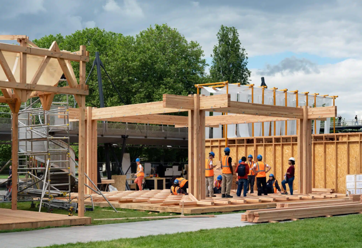 En lien avec la cheffe de projet de La Villette qui assure la coordination générale des JOP pour l’établissement, je suis chef de projet depuis 2 ans pour Archi-Folies. Pour les 20 projets de pavillons pour 20 fédérations, les 20 écoles ont eu chacune 9 jours de montage dès 7h du matin : avec l’enjeu de réussir à tout caler et d’ouvrir à temps. Les nombreux défis ont été relevés, ensemble. Une personne du bureau d’études a suivi les plans d’Archi-Folies à temps plein, en parallèle au reste de l’activité.