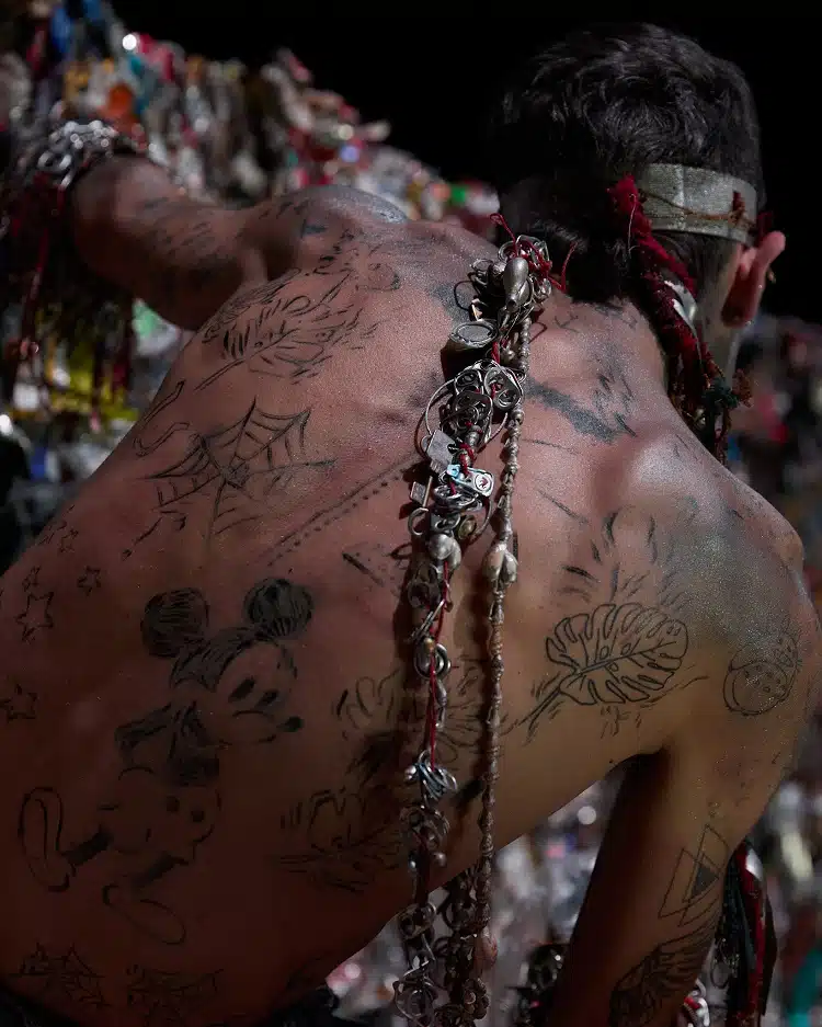 À la croisée de la performance immersive et de l’installation brute, Skinless invite le spectateur à une expérience radicale où l’amour et les déchets se rencontrent de manière inattendue. Le metteur en scène et plasticien Théo Mercier nous dévoile les motivations derrière cette scénographie unique, ainsi que sa quête pour repenser la production artistique dans un monde en mutation. Entre exploration de la matière et engagement écologique, il nous fait part de sa vision d’un théâtre qui questionne autant qu’il éveille, tout en inversant les dynamiques traditionnelles du spectacle.