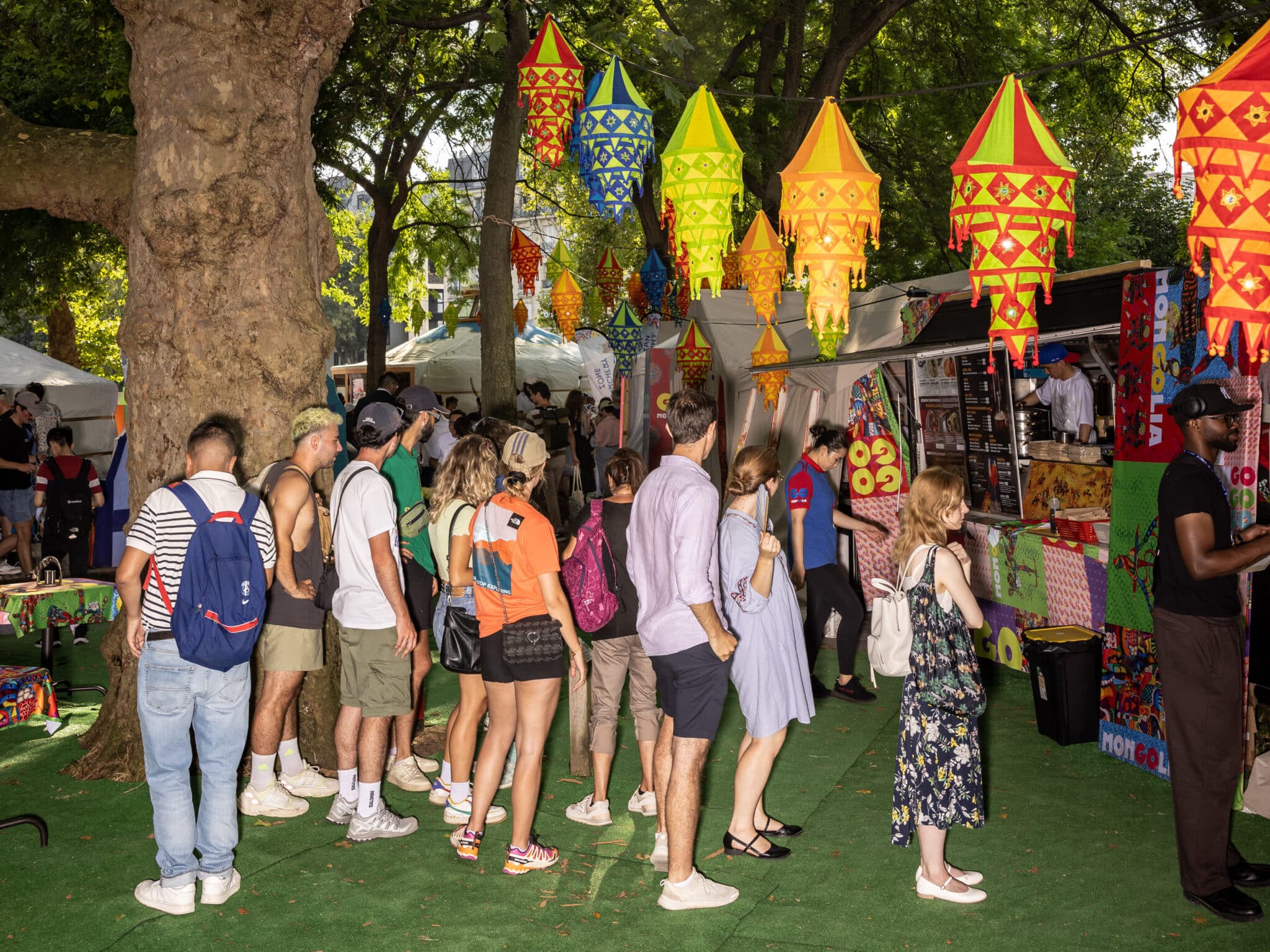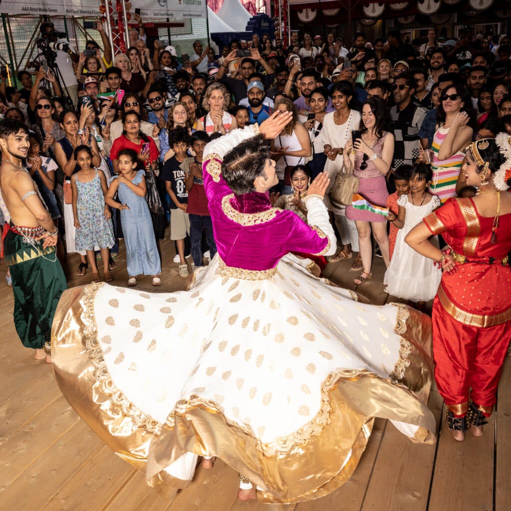 Le public est émerveillé par les danseuses de l’India House. Leurs costumes sont sortis tout droit d’un film de Bollywood. Elles nous apprennent les chorégraphies cultes du cinéma indien. Nous ne savons pas si nous faisons tous les mouvements correctement, mais tout le monde s’amuse bien.
